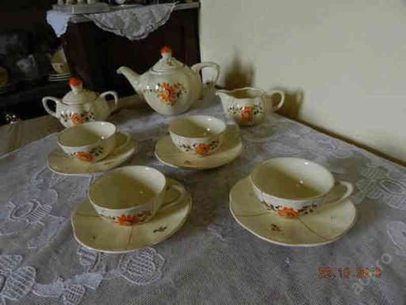 Krásný starý malovaný čajový servis pro 4 osoby - Ditmar Urbach Czechoslovakia.