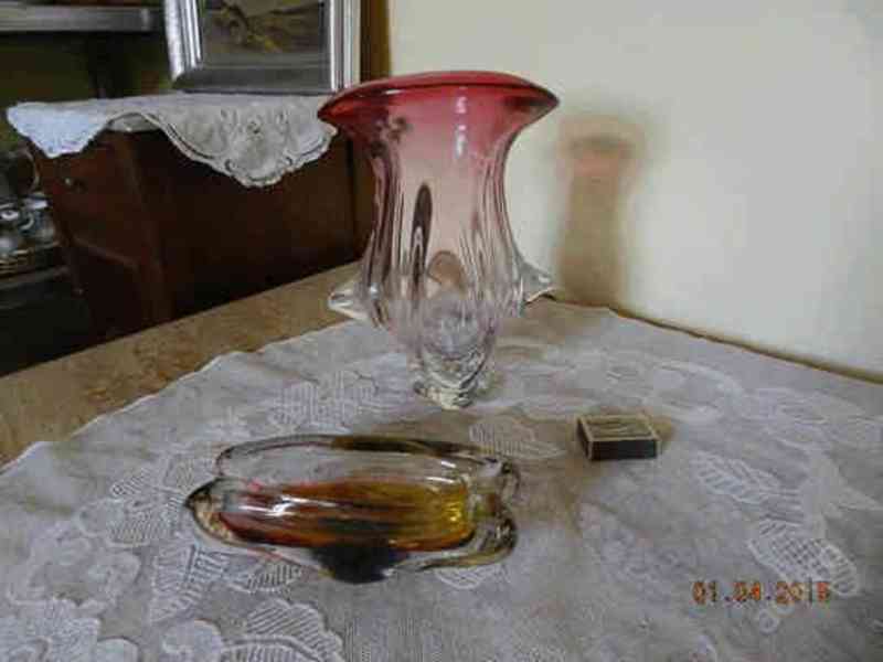 Hezká Autorská masivní růžová Váza z hutního skla, 2 pol, 20 stol.