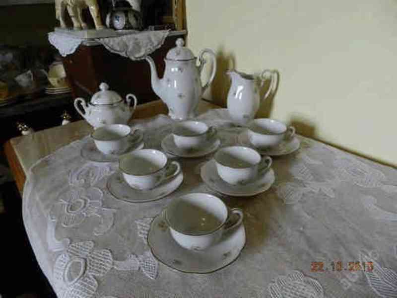 Hezký starý kávový servis pro 6 osob, květiny - Dubí Czechoslovakia.