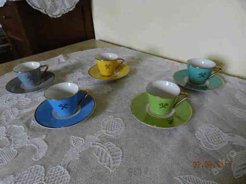 Nabízím krásnou sadu 5 barevných stylových hrnků s podšálkem Slavkov Czechoslovakia.