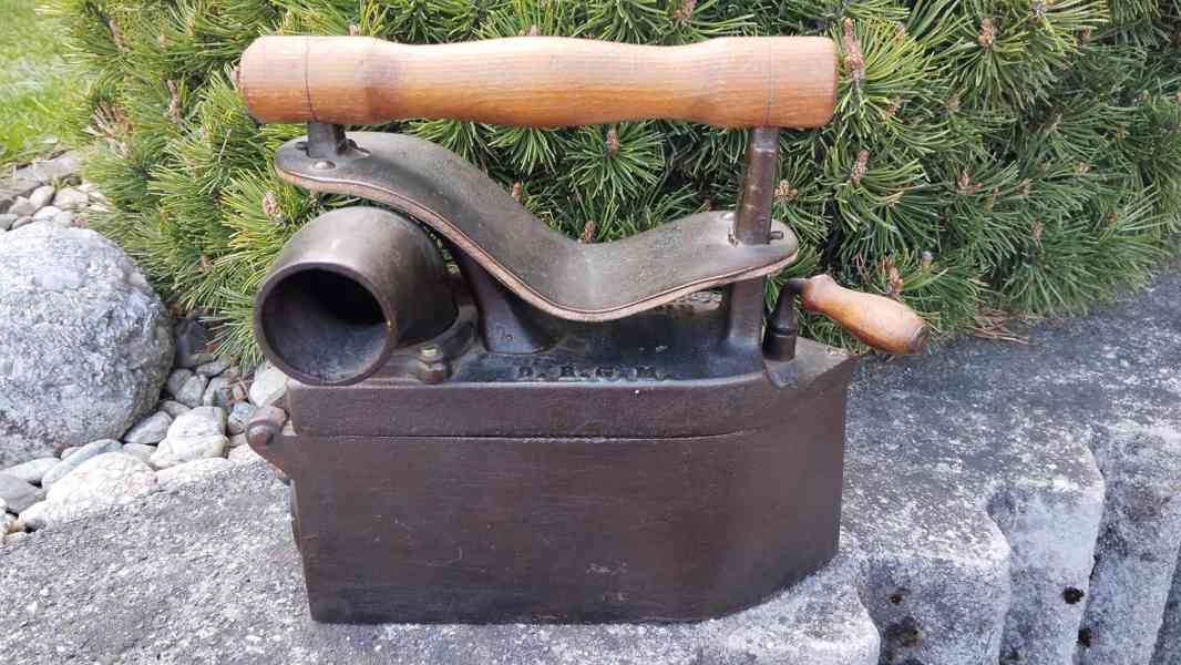 Obrovská komínová velmi stará sbírková žehlička D.R.G.M.