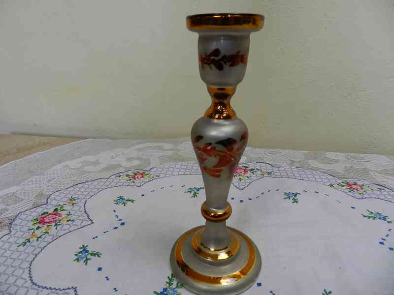 Velmi starý malovaný amalgámový Svícen, krásný stav.