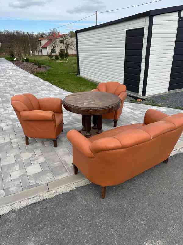 Starožitná křesla a stolek Halabala.