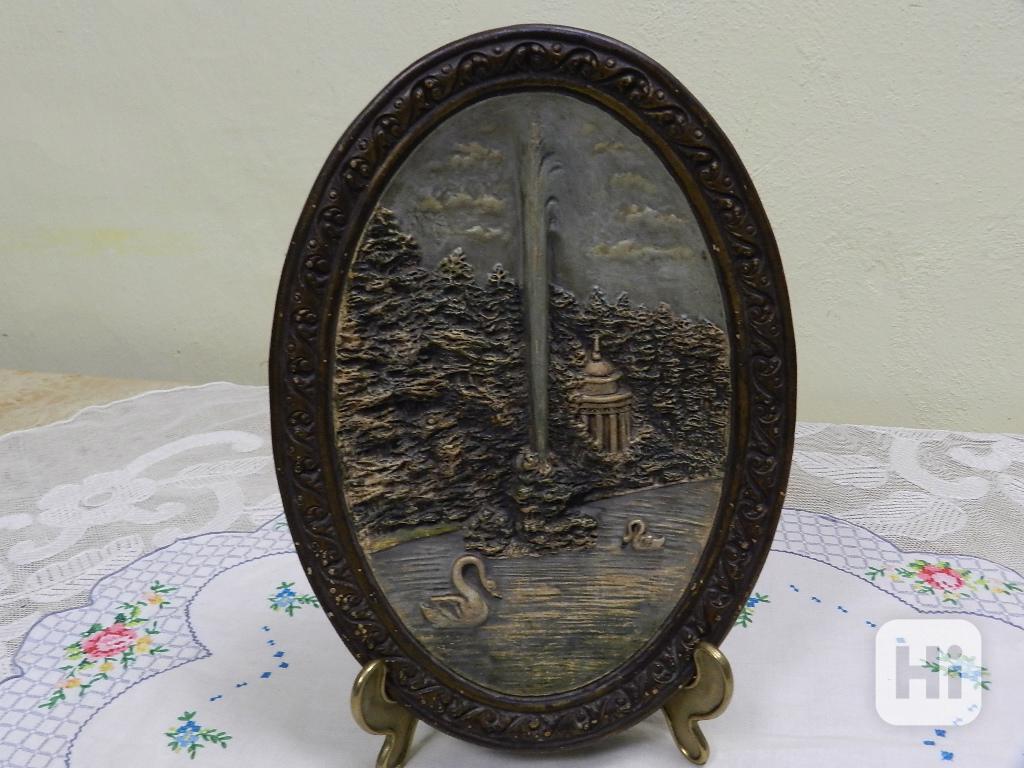Krásný keramický Obrázek na zeď, Labutě - Wilhelm Schiller, Horní Grund, kolem 1900.