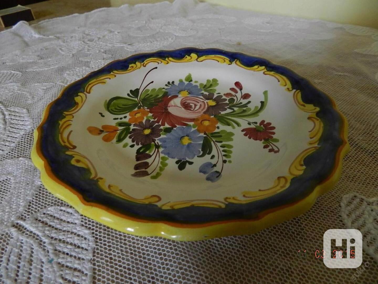 Nabízím hezký dekorační silnostěnný talíř s podpisem, pestrá ruční malba - Castelli, Itálie, 20 stol.