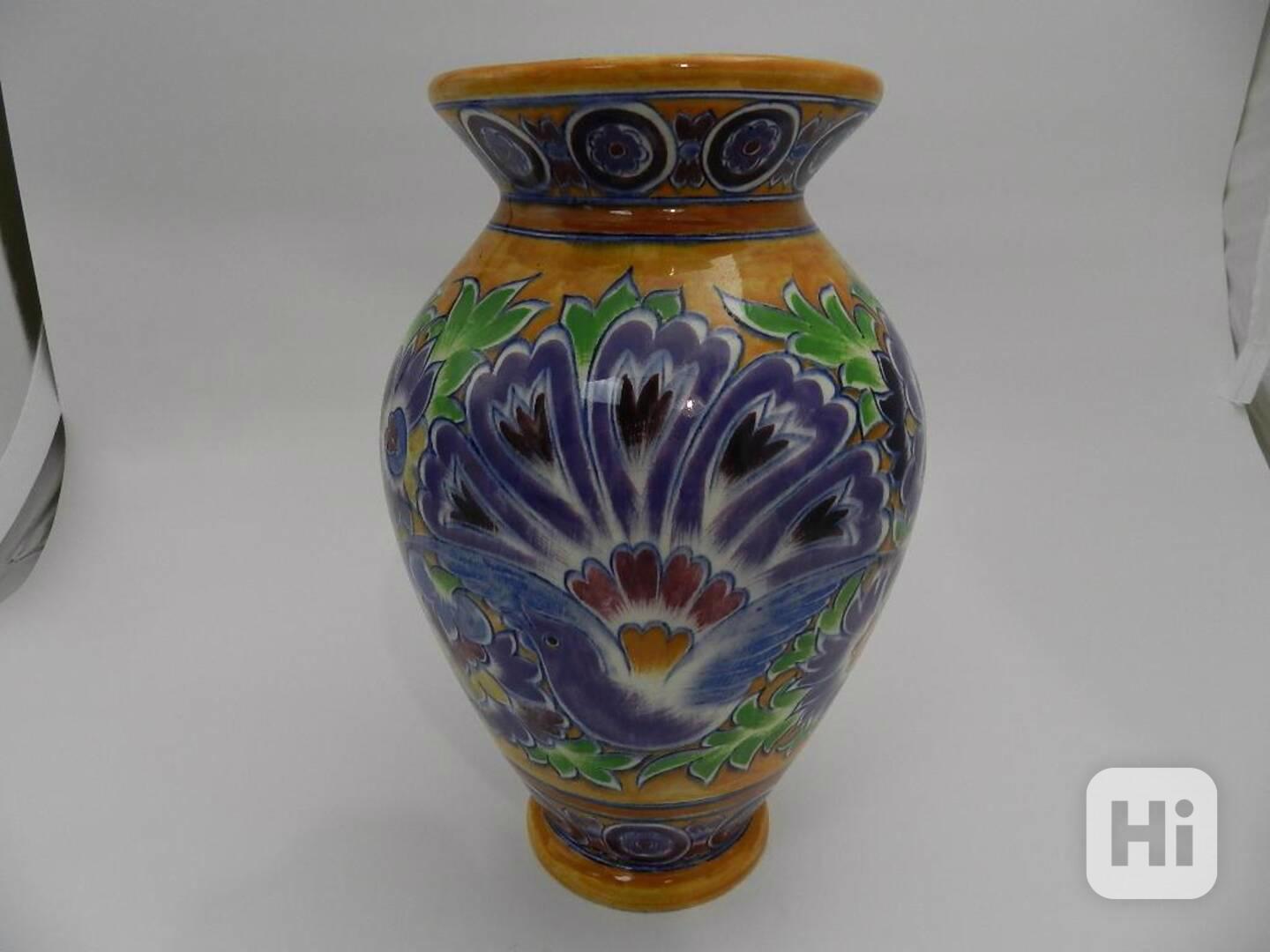 Krásná ručně malovaná keramická Váza s Ptáky - Značeno, 1923.