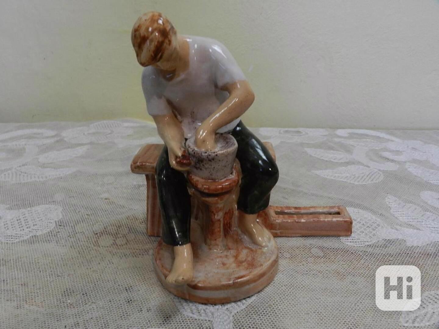 Zajímavá stará keramická plastika, Hrnčíř - značeno štítkem, Praha.