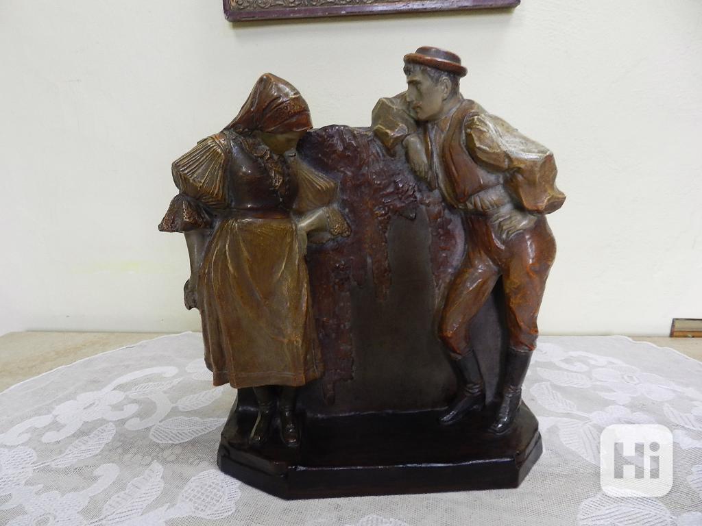 Krásné secesní keramické sousoší, Sedlák a Selka - Bechyně, 1 čtvrtina 20 stol.