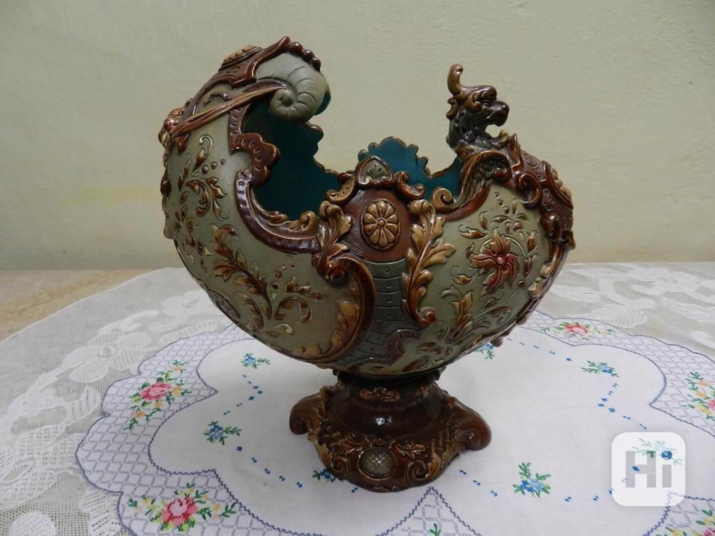 Krásný masivní novorenesanční Nástolec, ručně malovaná majolika - Wilhelm Schiller Horní Grund, kolem 1900.