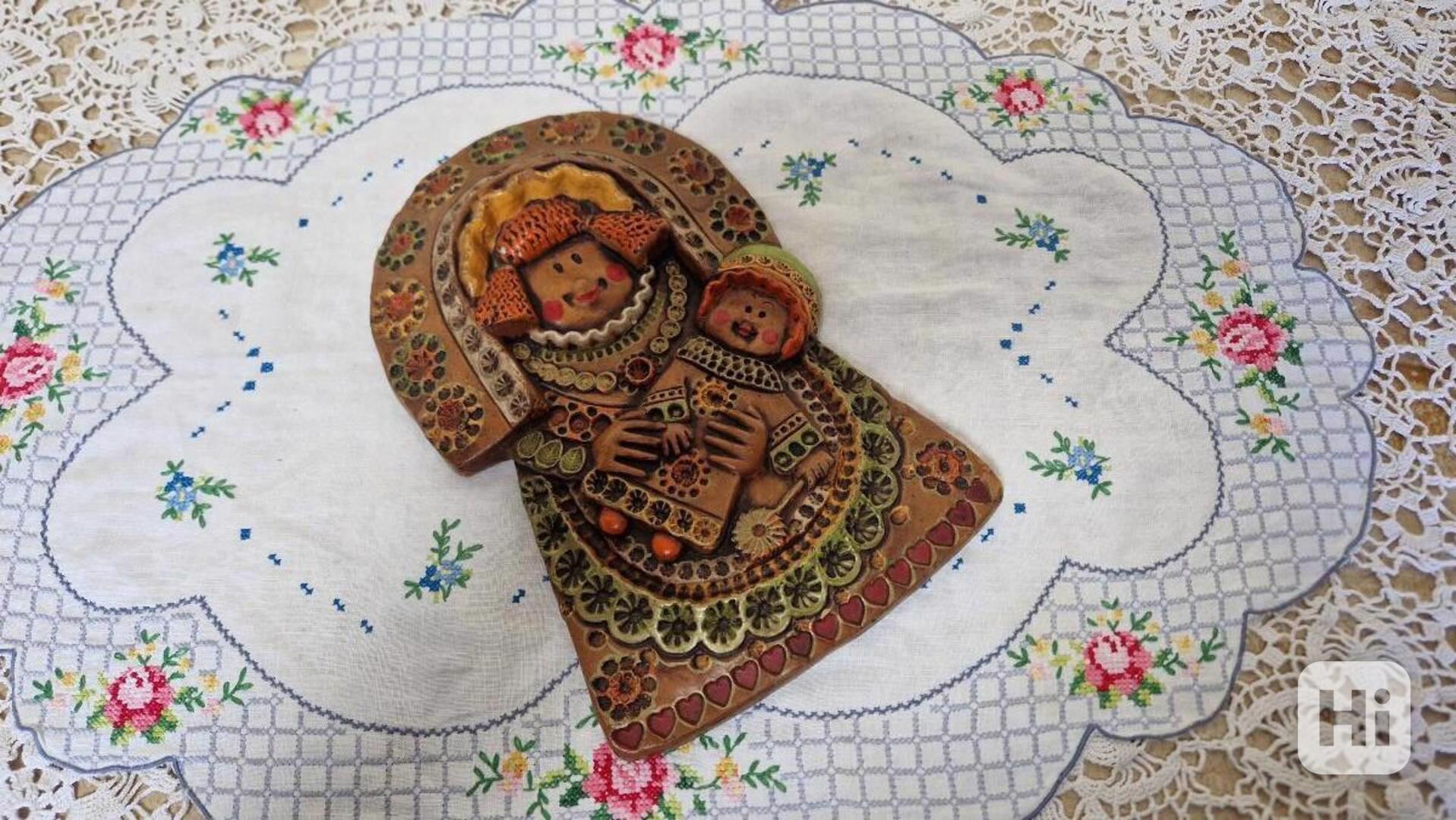 Zajímavý starý reliéf na zeď, Madona s dítětem, pálená hlína, malba s glazurou, krásná patina, pravděpodobně východní Evropa