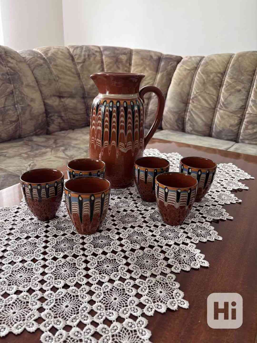Keramický džbán na víno s kalíšky