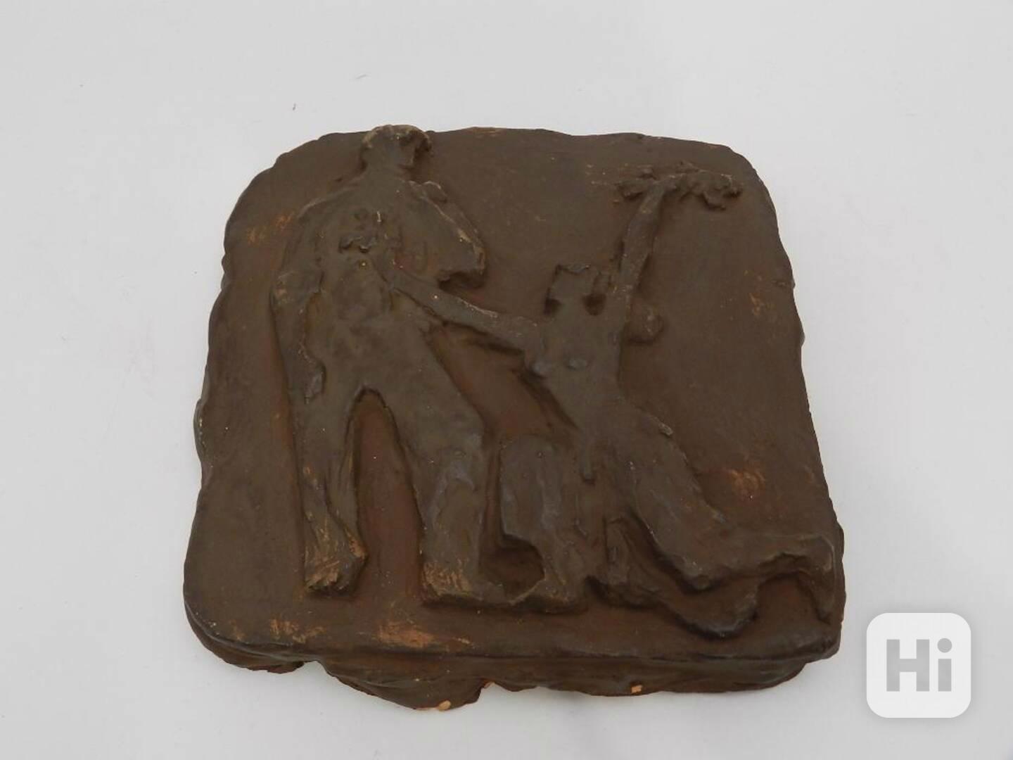 Zajímavý starý reliéf, pálená hlína - Značeno, Signováno Kalvoda.
