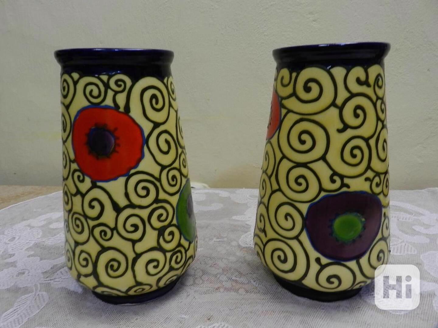 Krásné párové ručně malované Vázy, Majolika - Ditmar Urbach, značeno číslem, 1 třetina 20 stol.
