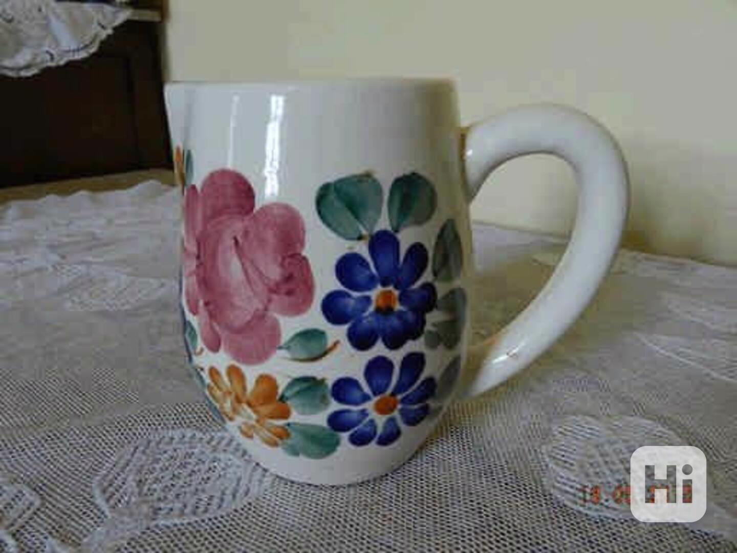 Krásný keramický džbán Fajáns.Rozměr: výška 13cm, šířka 15cm, váha 420g.