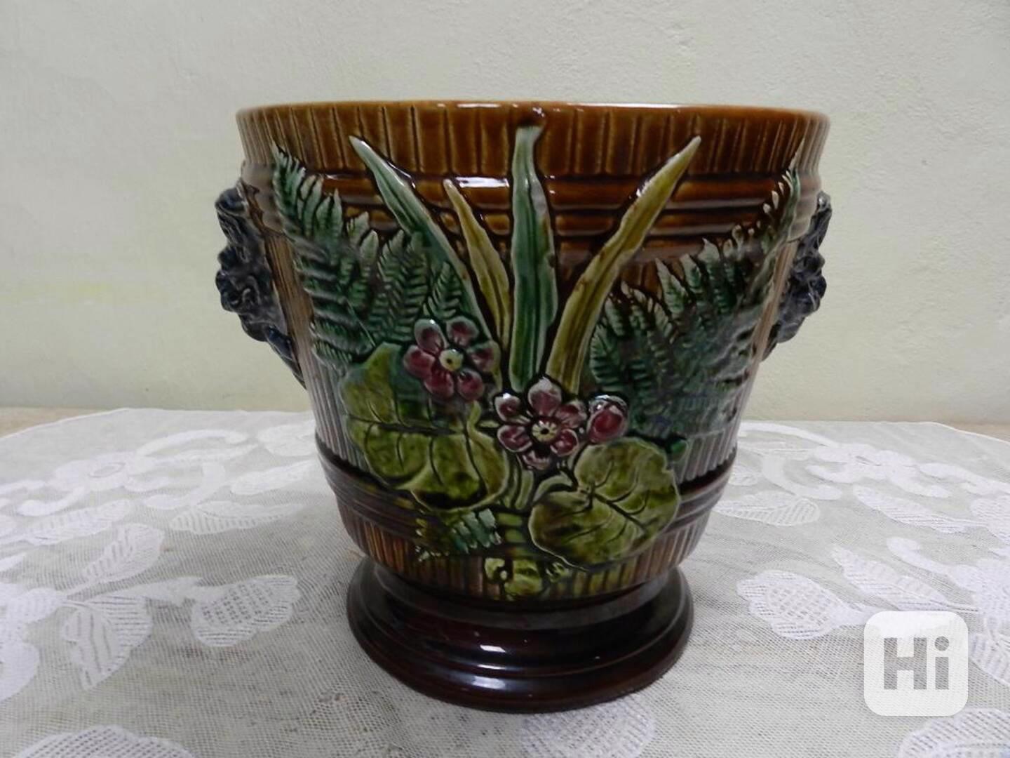 Velký secesní keramický Květináč Květník Kapradí Majolika