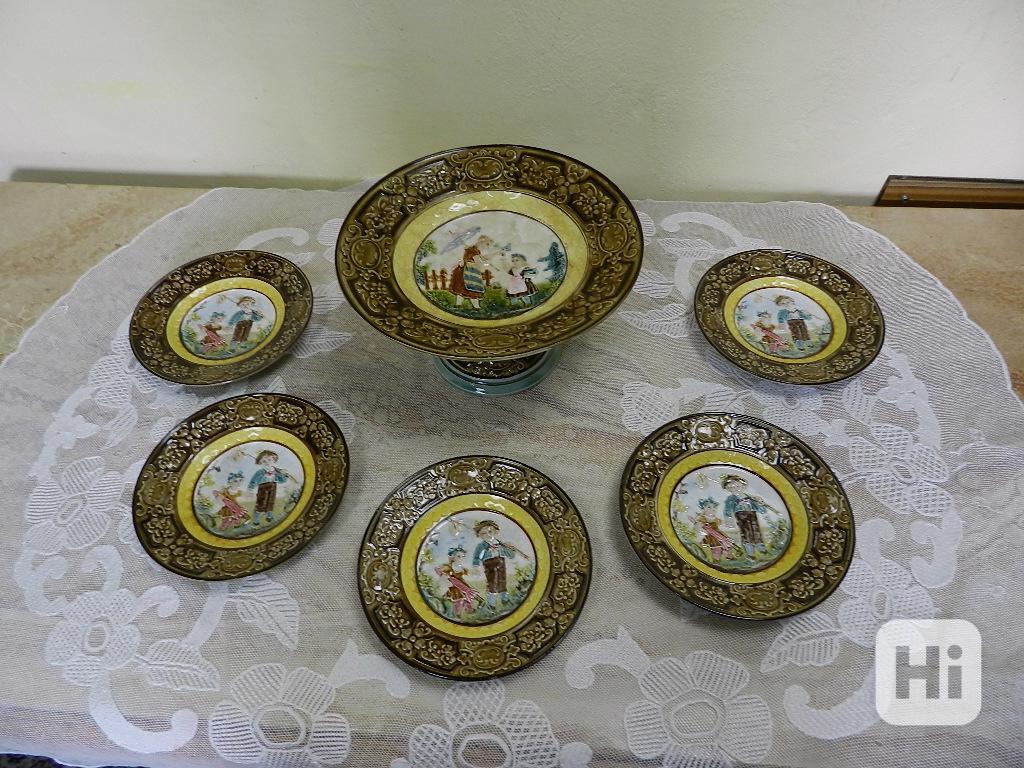 Sada secesní Nástolec + 5 Talířů malba Majolika R.D.Z.