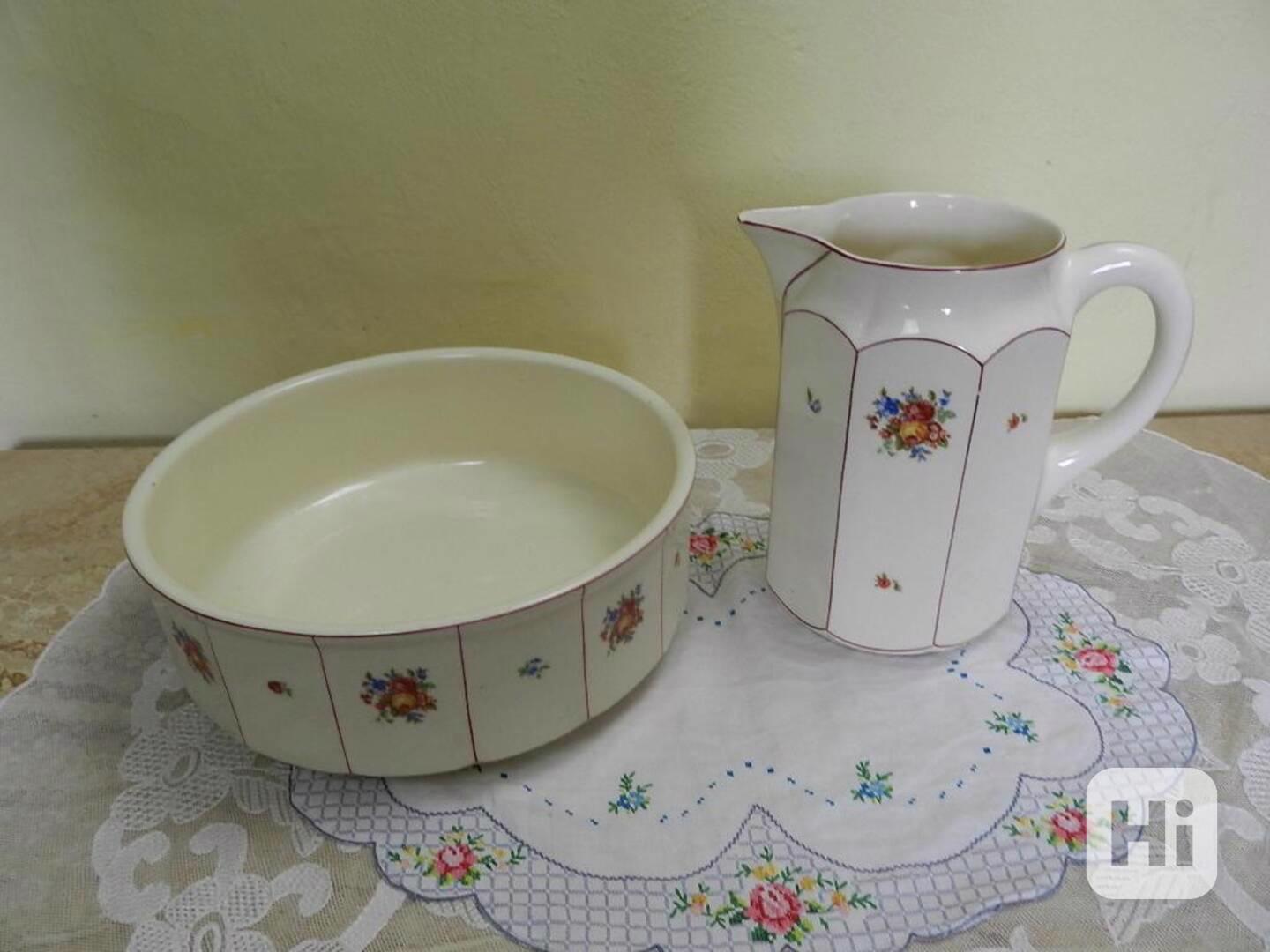 Rozměry: džbán výška 28cm, umyvadlo 37-13,5cm.