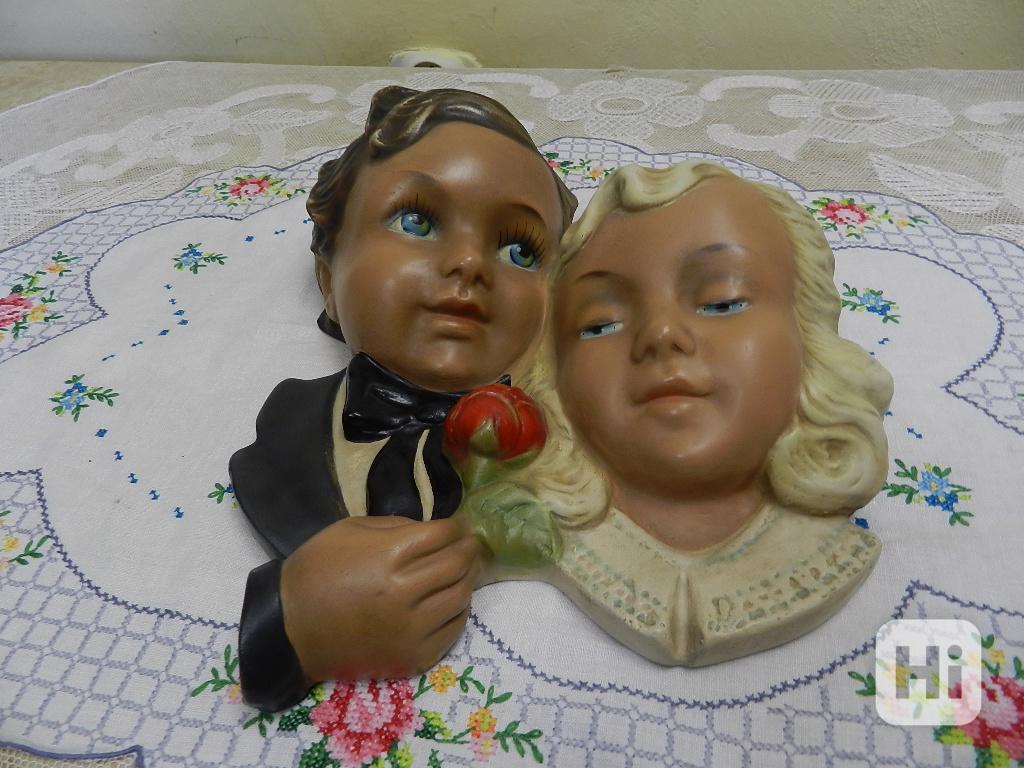 Krásný starý malovaný Obrázek Relief na zeď Chlapec a Dívka