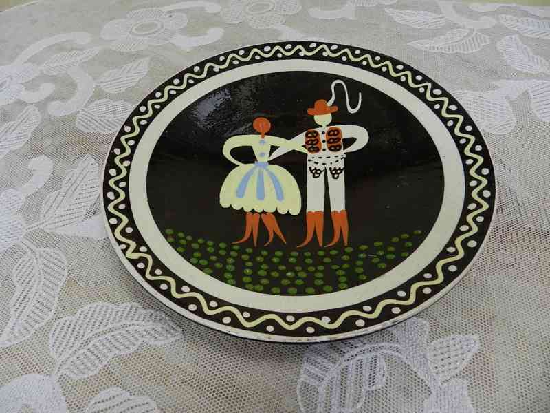 Krásný starý zdobený talíř, Šohaj a Děvče - Pozdišovce.