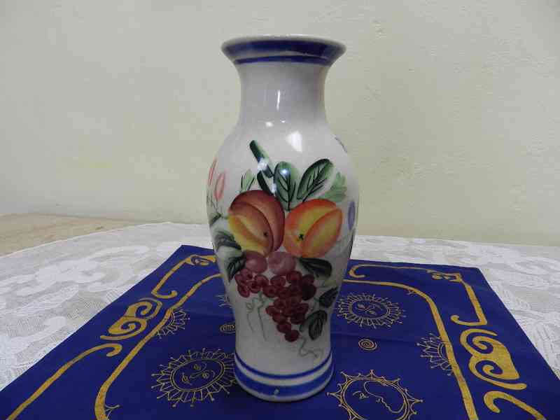 Hezká stará ručně malovaná Váza s Ovocem a Broučky.