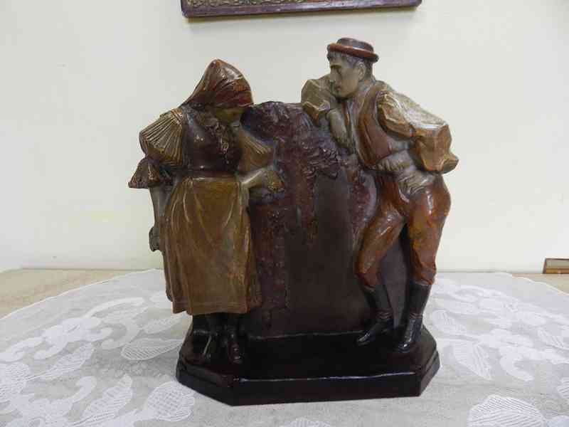 Krásné secesní keramické sousoší, Sedlák a Selka - Bechyně, 1 čtvrtina 20 stol.