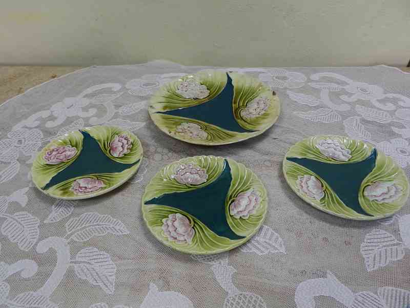 Krásné secesní Talíře, sada 1 velký a 3 menší, Majolika - pravděpodobně Eichwald.