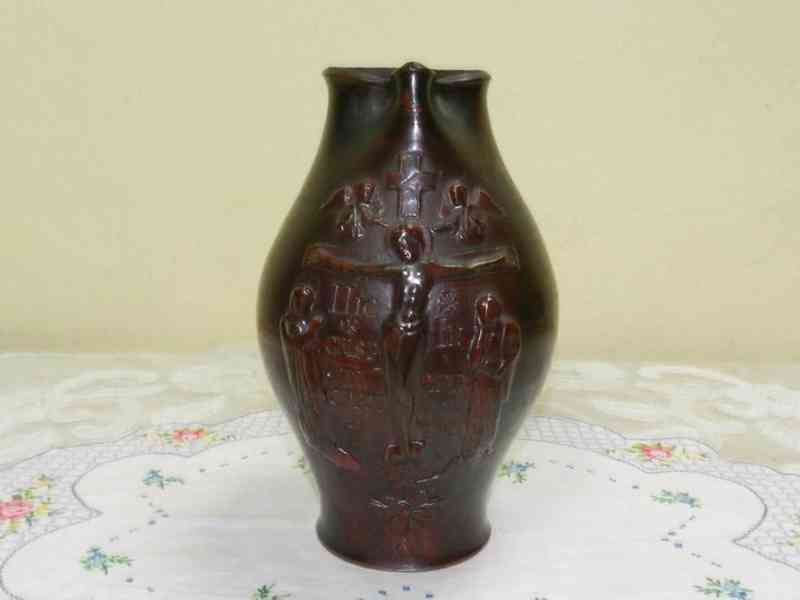 Zajímavý velmi starý hliněný Džbán s Ježíšem - Značeno.