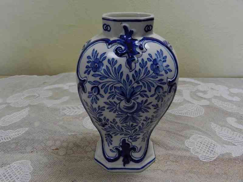 Krásná ručně malovaná keramická Váza, kobaltová modř - Delft, Holandsko,19 stol, Značeno.