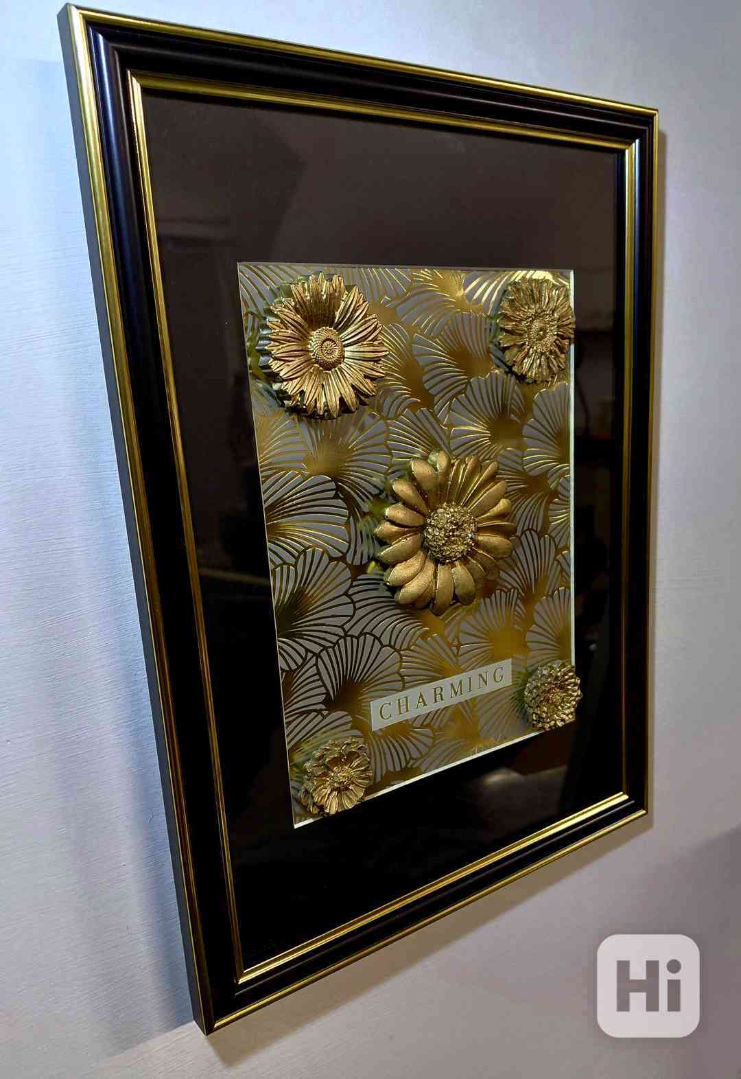 Originální 3D zlatý obraz s květy