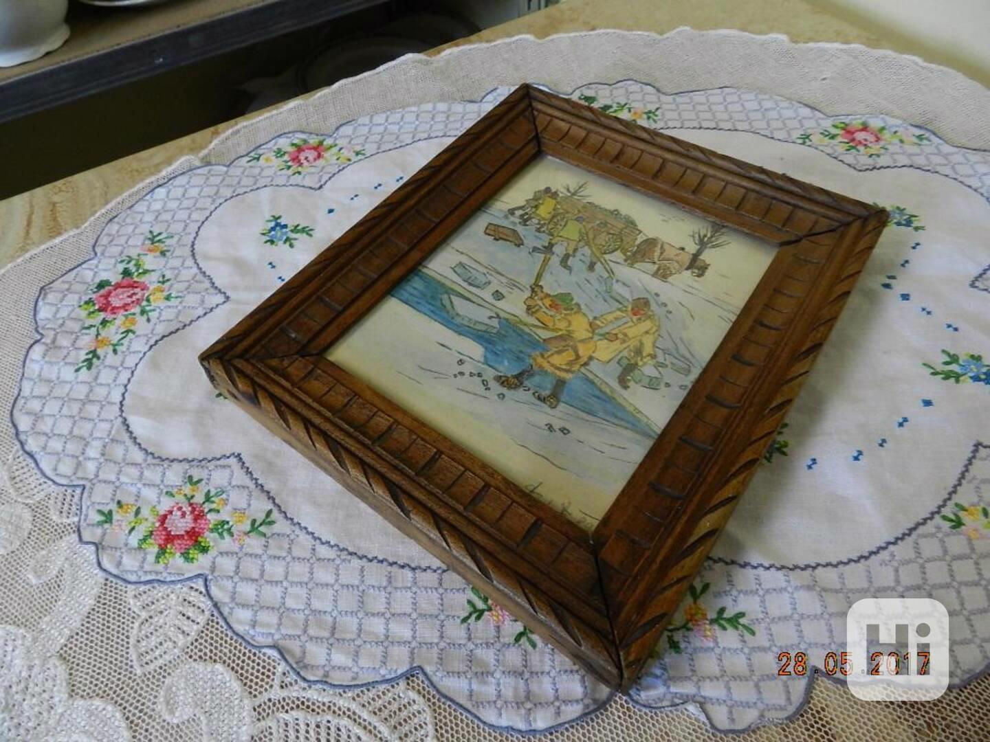 Rozměry celkové: 27,5-25,5cm, krásný dřevěný rámeček.