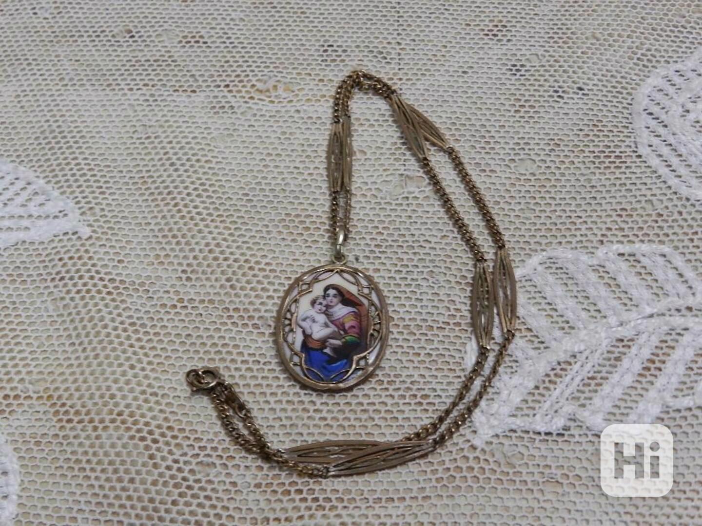 Krásný velmi starý přívěšek Madonka komplet s řetězem