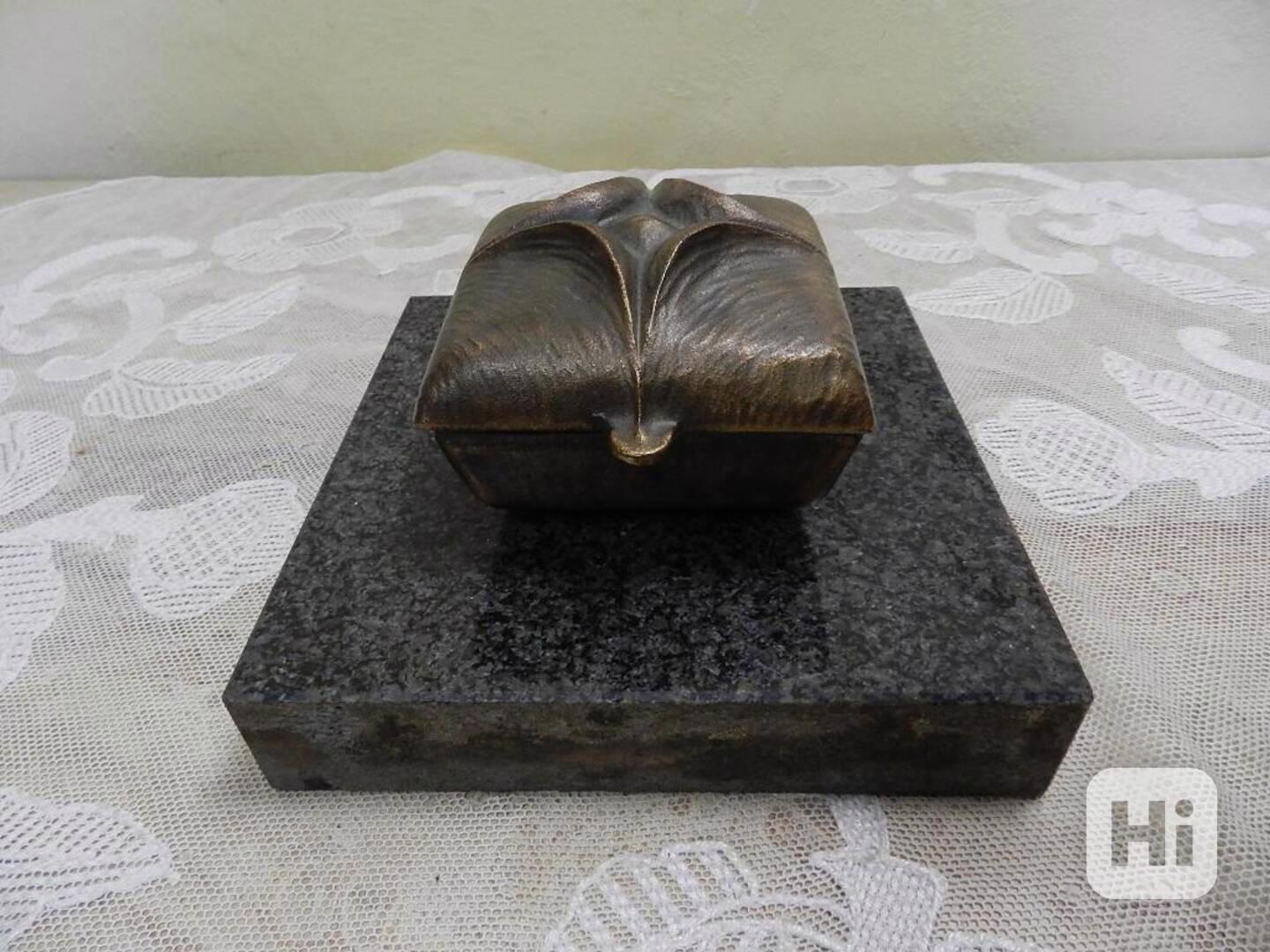 Bronzový Objekt na masivním kamenném podstavci, velmi kvalitní zpracování, značeno číslem, 20 stol.