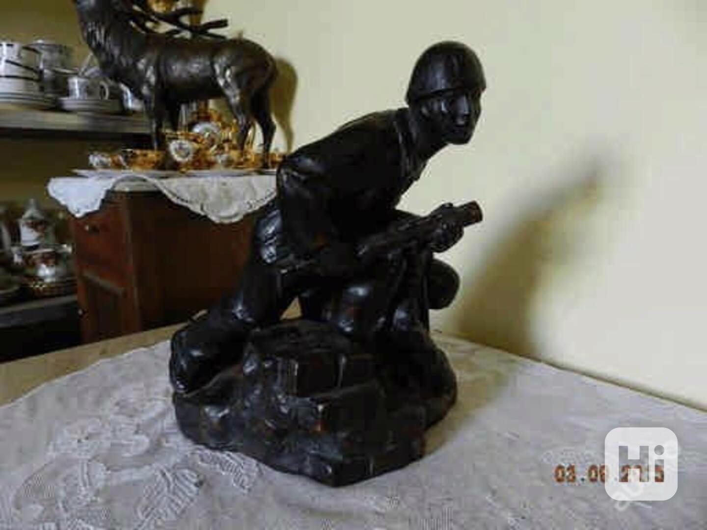 Staré masivní sousoší Vojáci Barikáda - signatura Neužil
