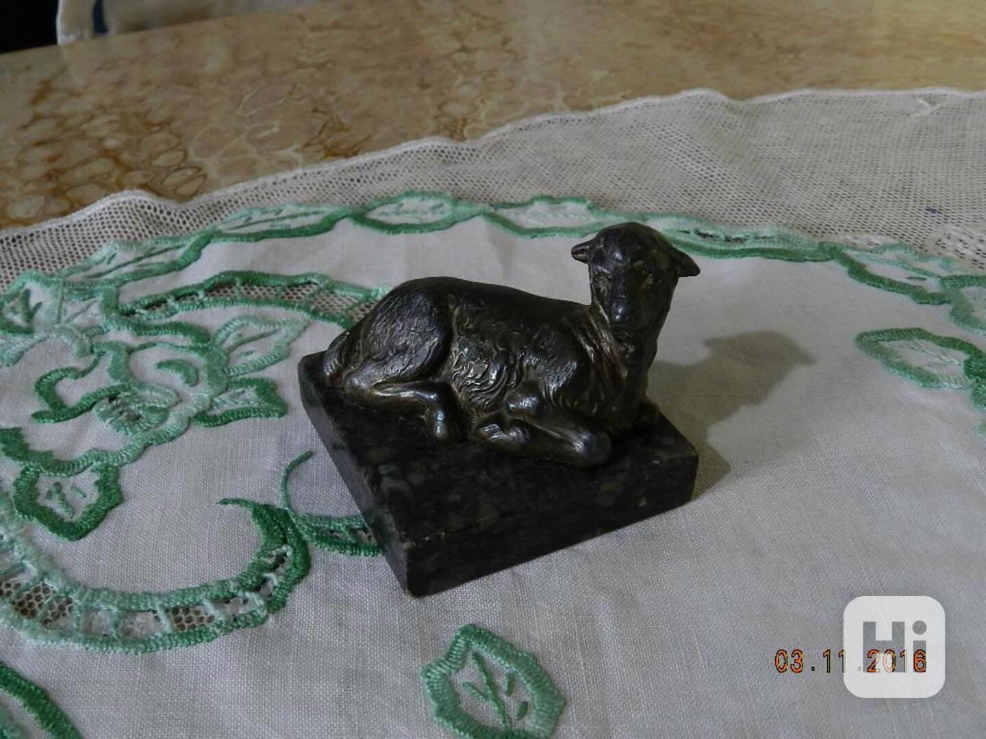 Hezká soška ovečky na Mramorovém Podstavci.