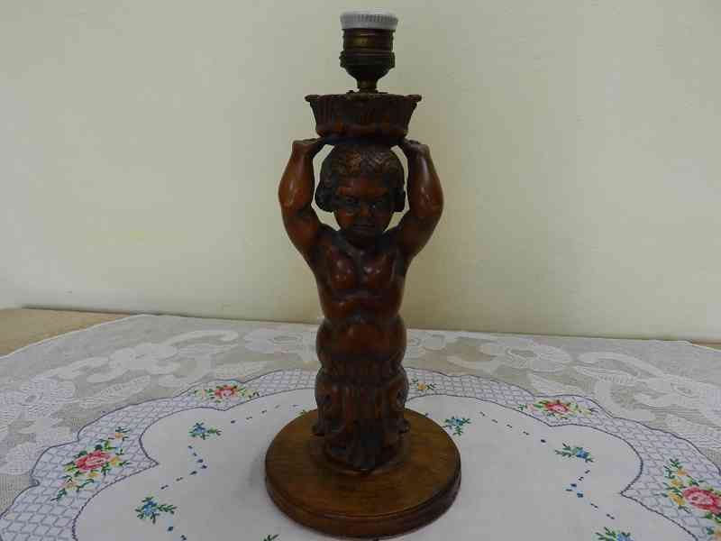Krásná velmi stará dřevěná Lampa Svícen - Putti.