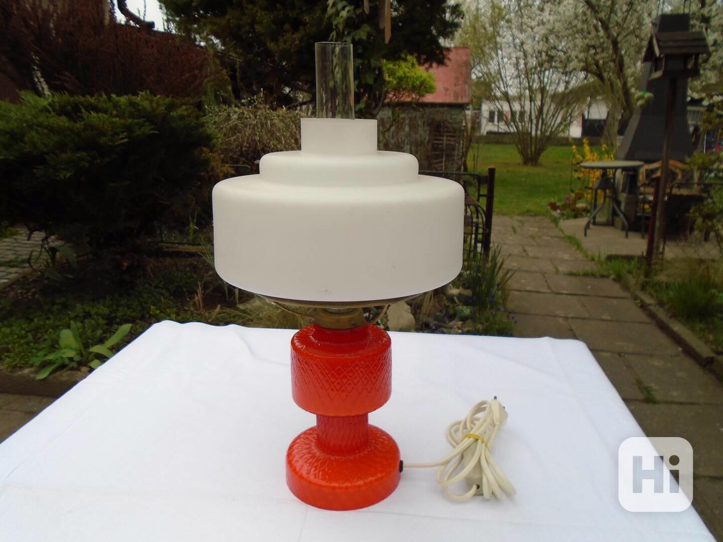 Popis: Stará stolní skleněná lampa, elektrická petrolejka,