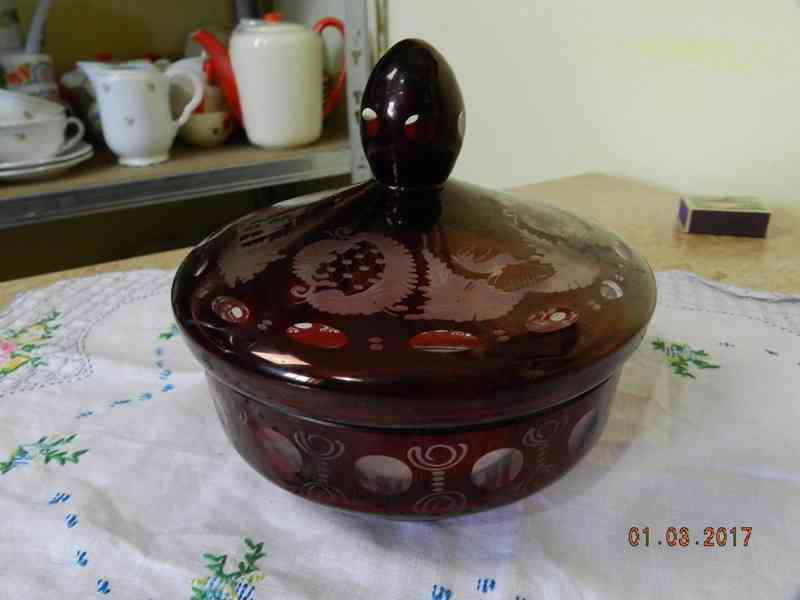 Krásná stará broušená rubínová Cukřenka či Dóza, Čechy, 1 pol. 20 stol.