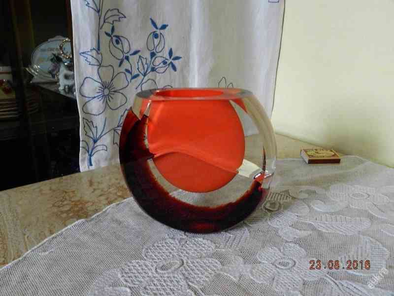 Zajímavá autorská masivní broušená váza, barva červená Hutní Sklo, Čechy, kolem 2 třetiny 20 stol.