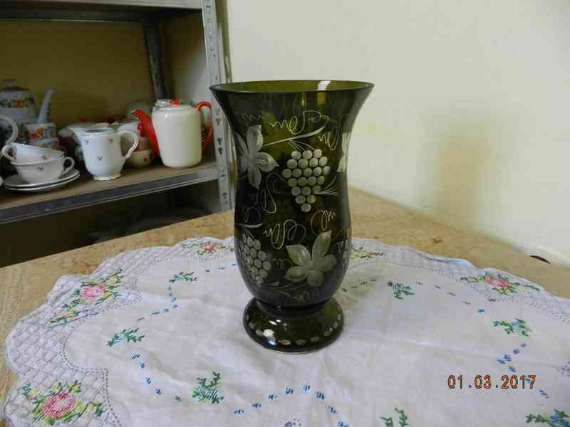 Hezká stará olivově zelená broušená Váza.
