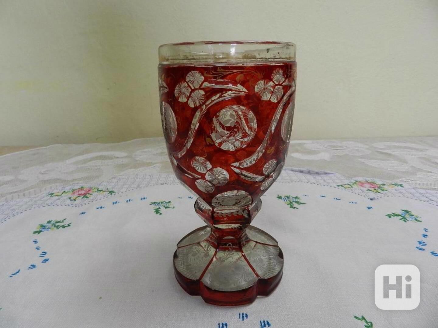 Krásná masivní bohatě zdobená rubínová Sklenice Biedermeier - Čechy, 1 pol. 19 stol.