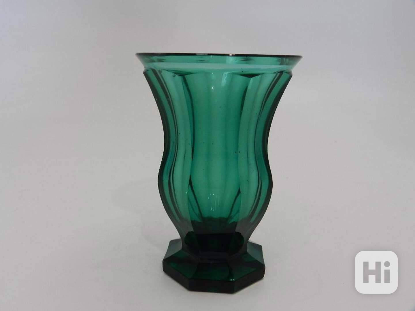 Krásná broušená zelená Sklenice, uranové sklo - Čechy, 2 třetina 19 stol.