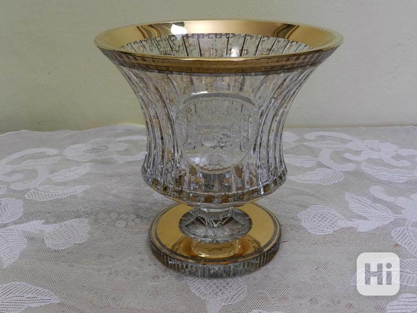 Luxusní stará velmi masivní Váza, bohaté zdobení a zlacení, precizní brus, lept - Nový Bor, 1 pol. 20 stol.