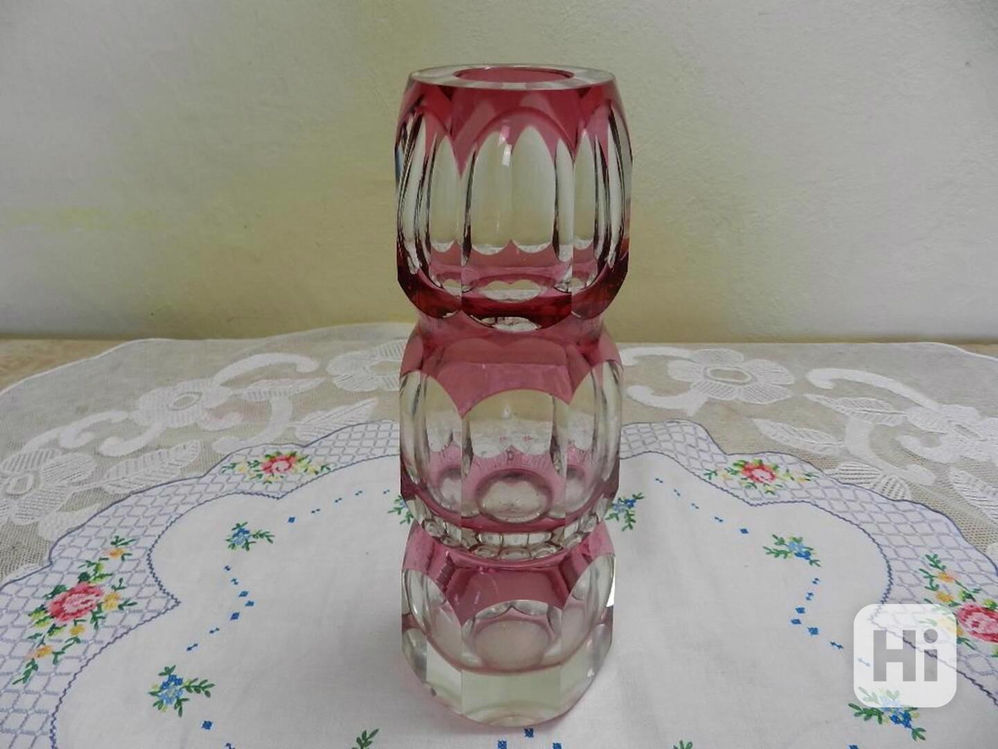 Zajímavá Autorská fialová Váza, postupně zužující se tělo, broušeno do fazet - Čechy, 2 pol 20 stol.