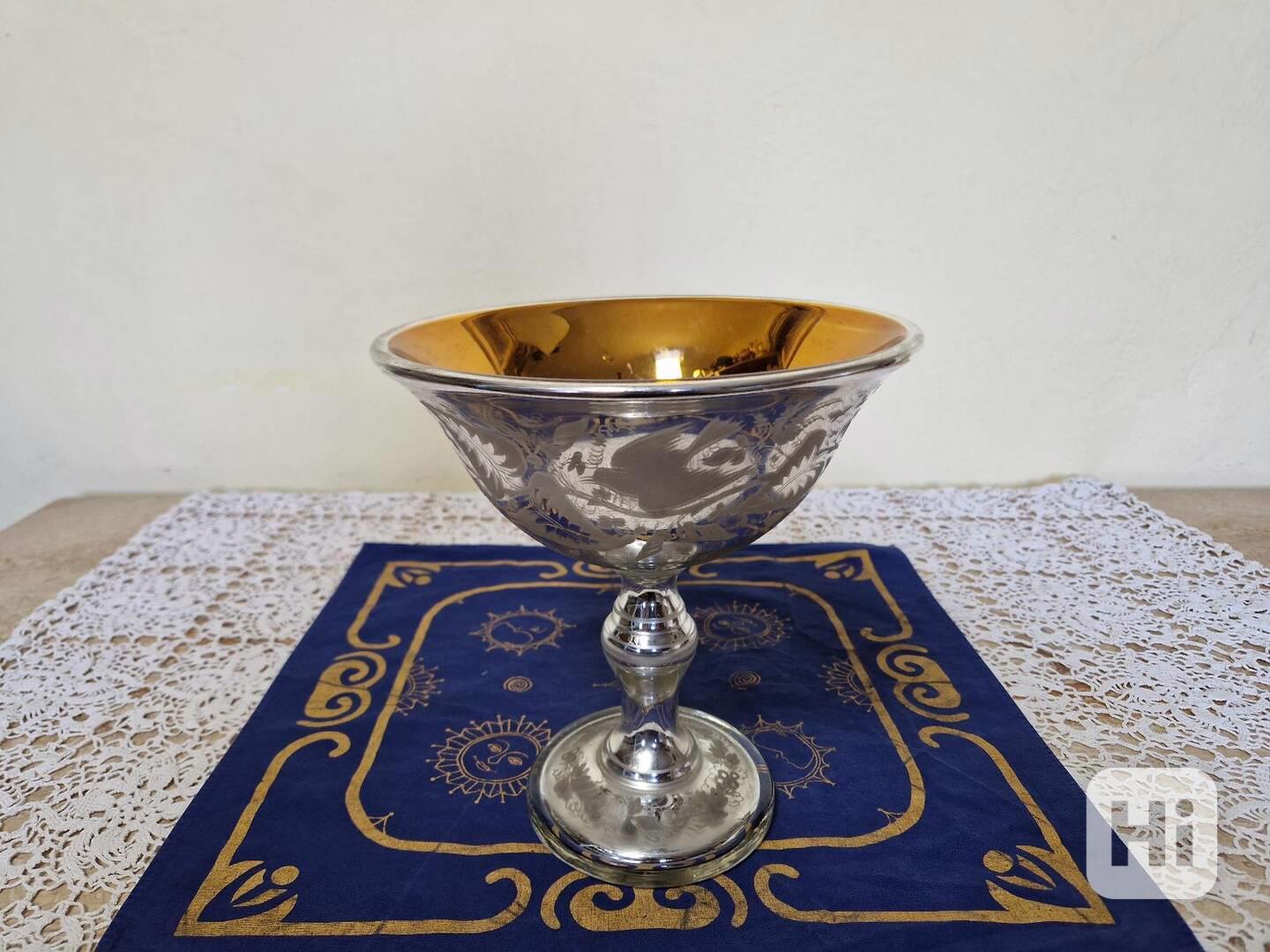 Krásný velmi starý malovaný amalgámový Nástolec, větší velikost! Motivy ptáčků - Čechy, 19 stol.