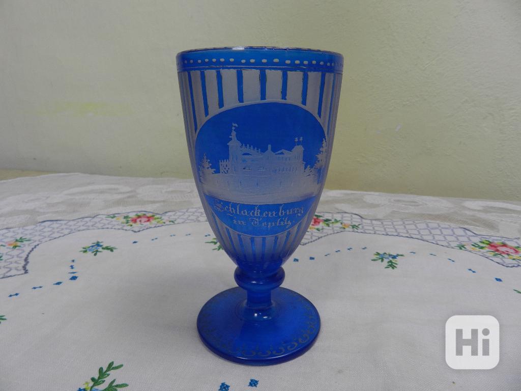 Krásná stará modrá Sklenice Lázeňský Pohárek Teplitz Teplice