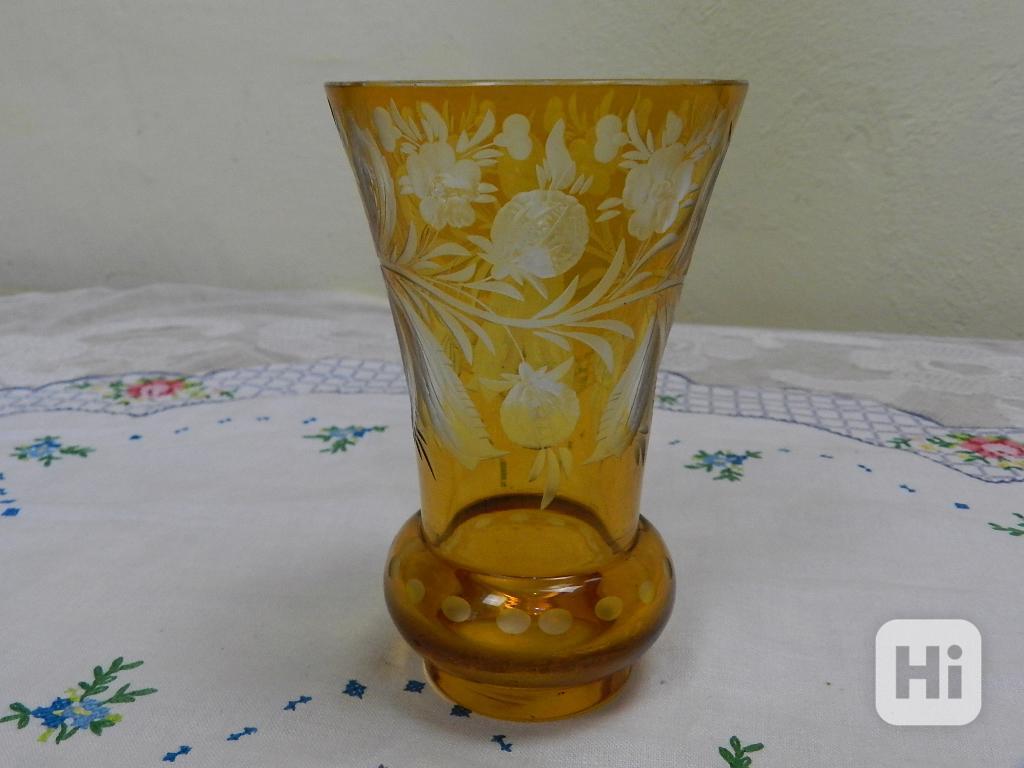 Hezká stará broušená žlutá Vázička.