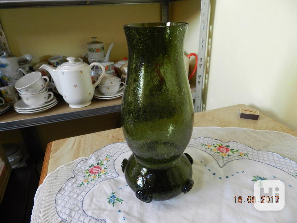 Zajímavá stará skleněná zelená Váza Jan Havelka Nový Bor