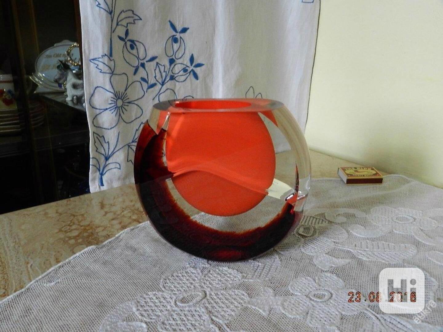 Zajímavá autorská broušená červená Váza Hutní Sklo Čechy