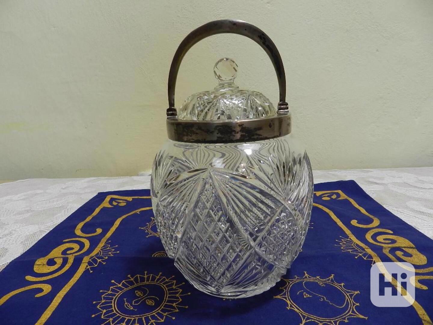 Krásná bohatě broušená masivní Dóza z čirého skla, stříbrná montáž, Čechy, 1 třetina 20 stol.