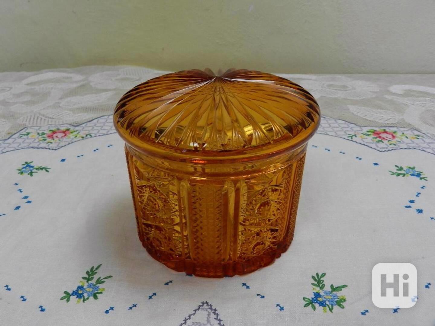 Luxusní stará broušená Dóza medové žluté sklo